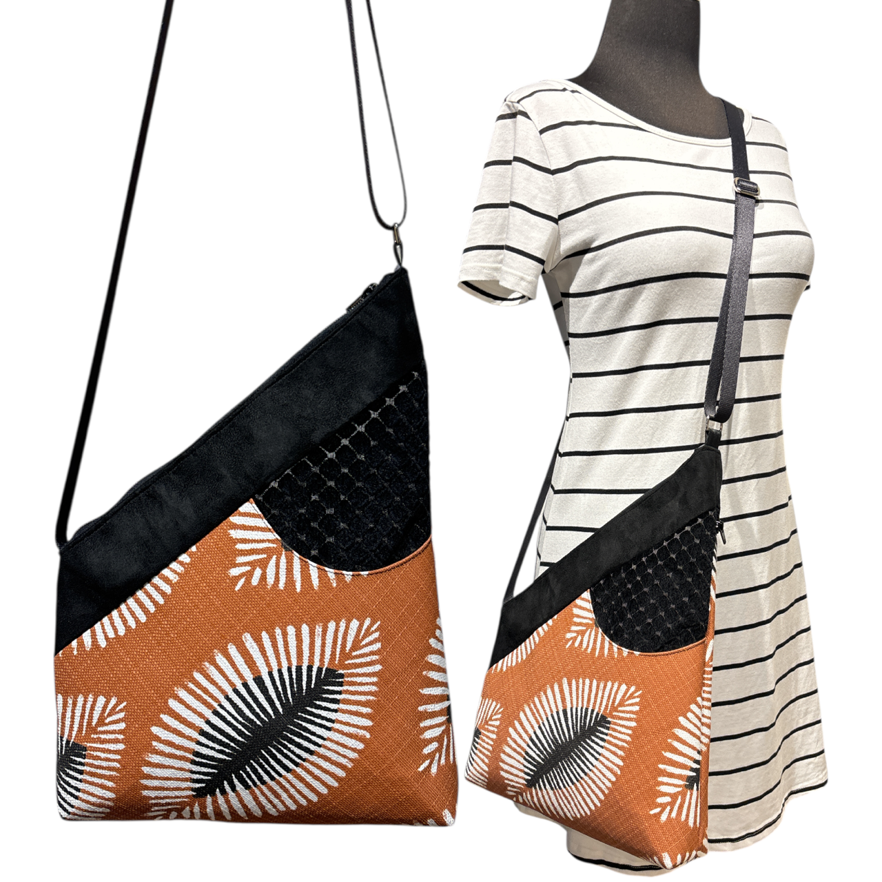 Every handbag is made with Upholstery Fabric & Micro Suede. These are vegan friendly fibers. I find the best fabrics from the around the world & also make my own custom fabric.